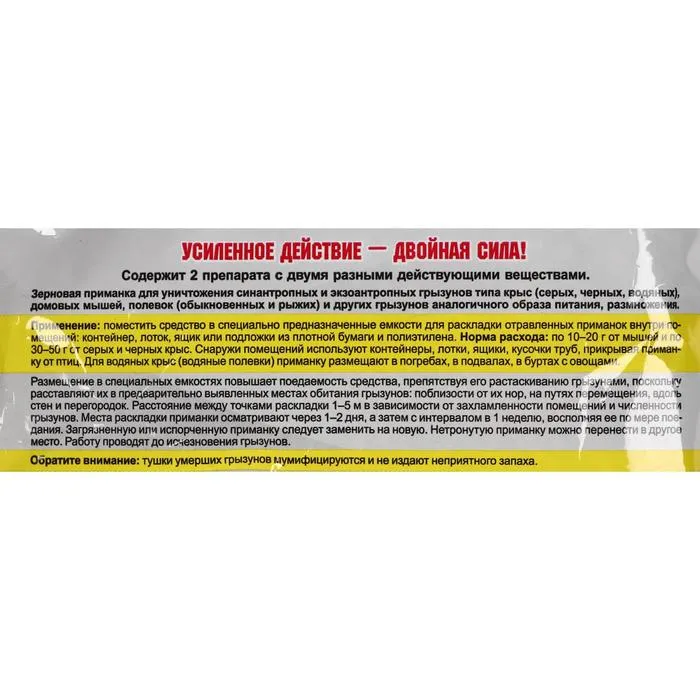 Готовая зерновая приманка для уничтожения крыс и мышей: усиленное действие - двойная сила!