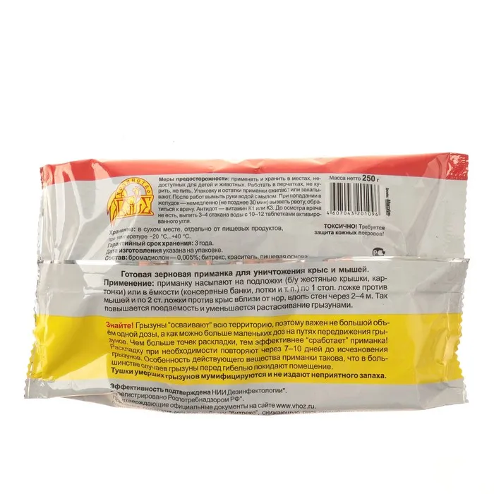 Готовая зерновая приманка для уничтожения крыс и мышей.