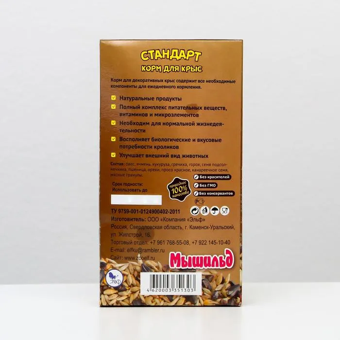 Зерновой корм «Мышильд стандарт» для декоративных крыс, 500 г, коробка — Характеристики