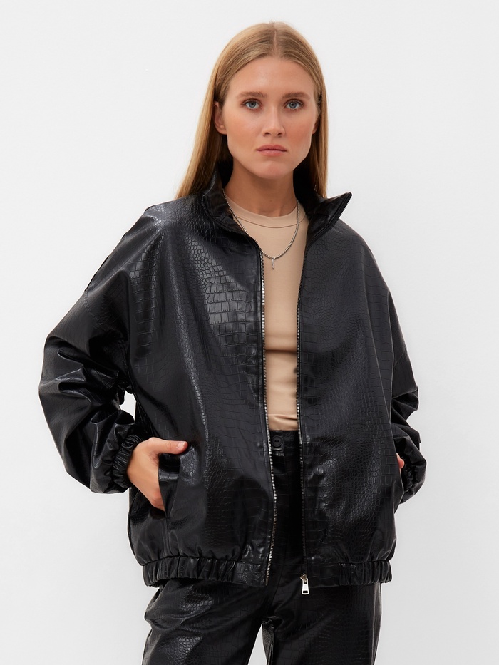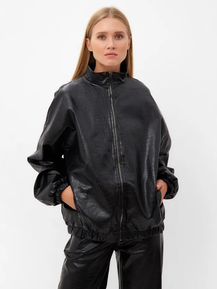 Жакет женский демисезонный MINAKU: Eco leather, чёрный, размер 46 — Характеристики