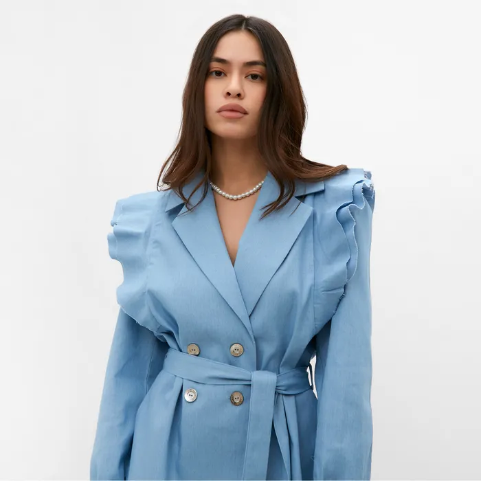 Жакет женский джинсовый с воланами MIST, размер 46, голубой — Характеристики