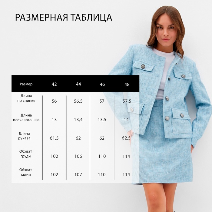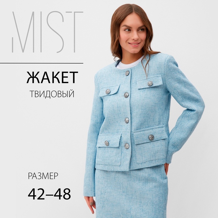 Жакет женский твидовый MIST, размер 44, голубой — Характеристики