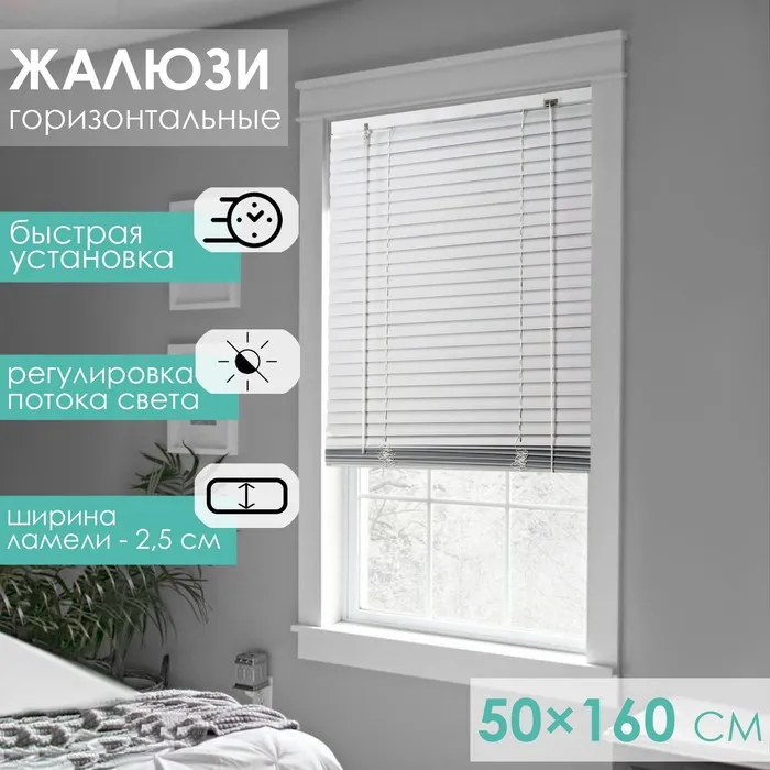 Жалюзи горизонтальные 50×160 см, цвет белый — Характеристики