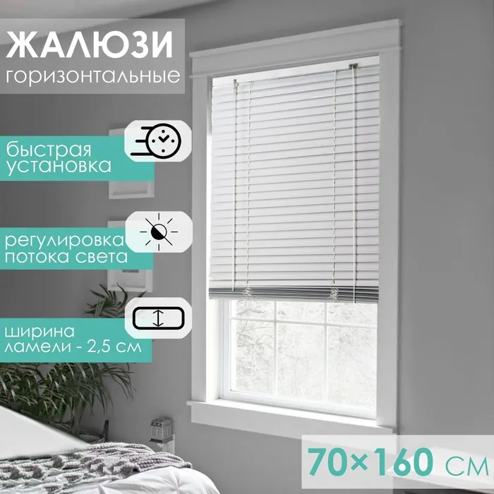 Жалюзи горизонтальные 70×160 см, цвет белый — Характеристики