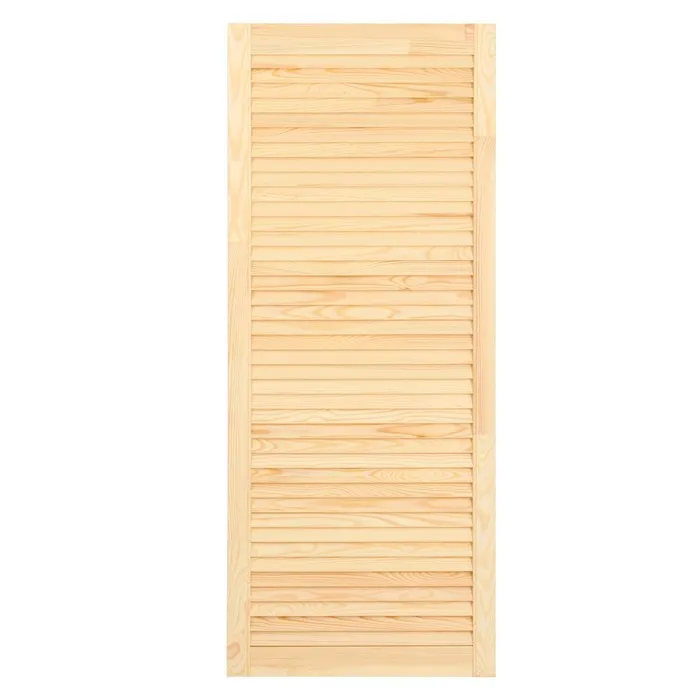 Жалюзийная дверь изготовлена из сосны. Такие двери используются в помещениях, где требуется постоянное проветривание. Также применять жалюзийный фасад можно для шкафов, тумбочек для ванной комнаты, на кухне, балконе или в кладовке. С помощью изделия легко создать уникальный дизайн мебели или обновить её внешний вид.