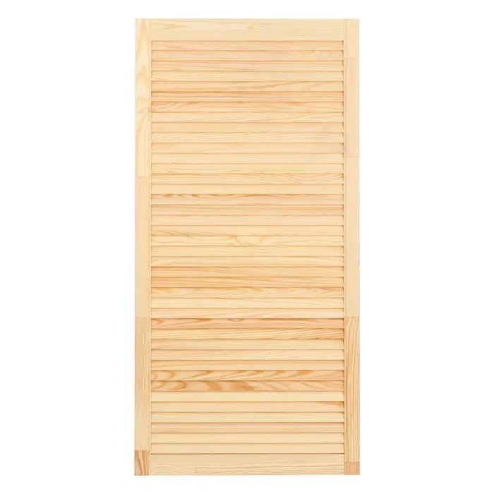 Жалюзийная дверь изготовлена из сосны. Такие двери используются в помещениях, где требуется постоянное проветривание. Также применять жалюзийный фасад можно для шкафов, тумбочек для ванной комнаты, на кухне, балконе или в кладовке. С помощью изделия легко создать уникальный дизайн мебели или обновить её внешний вид.