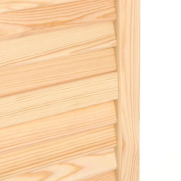 Жалюзийная дверь изготовлена из сосны. Такие двери используются в помещениях, где требуется постоянное проветривание. Также применять жалюзийный фасад можно для шкафов, тумбочек для ванной комнаты, на кухне, балконе или в кладовке. С помощью изделия легко создать уникальный дизайн мебели или обновить её внешний вид.