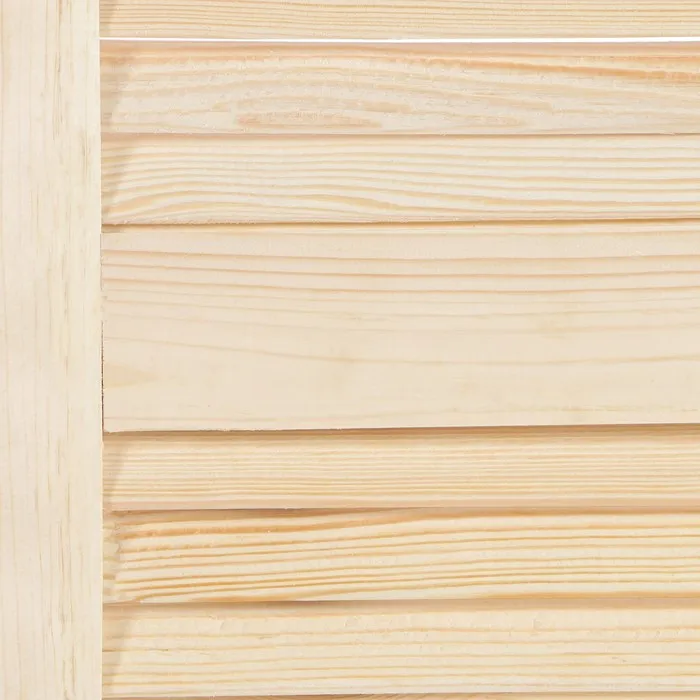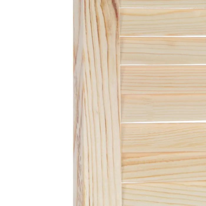 Жалюзийная дверь изготовлена из сосны. Такие двери используются в помещениях, где требуется постоянное проветривание. Также применять жалюзийный фасад можно для шкафов, тумбочек для ванной комнаты, на кухне, балконе или в кладовке. С помощью изделия легко создать уникальный дизайн мебели или обновить её внешний вид.
