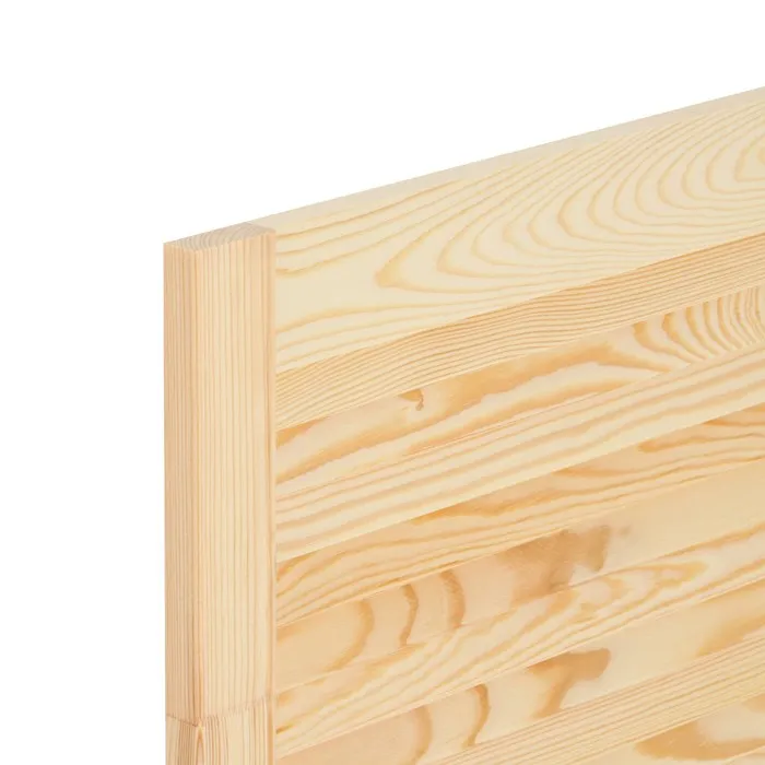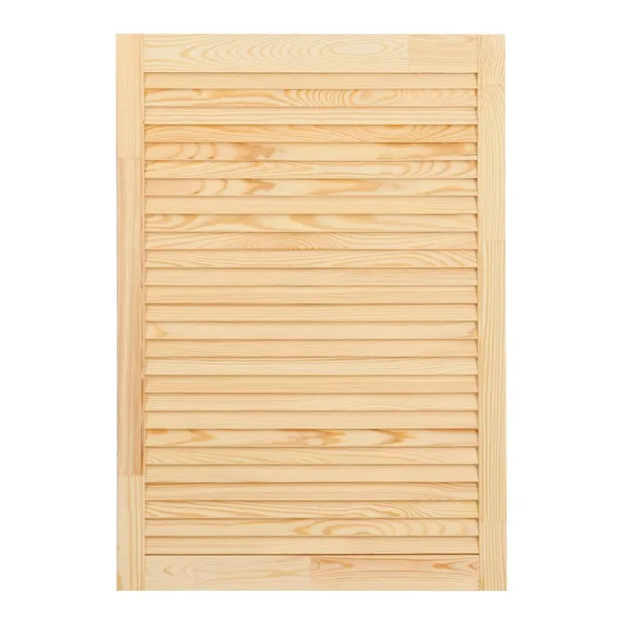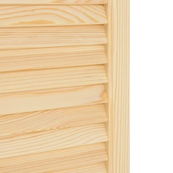 Жалюзийная дверь изготовлена из сосны. Такие двери используются в помещениях, где требуется постоянное проветривание. Также применять жалюзийный фасад можно для шкафов, тумбочек для ванной комнаты, на кухне, балконе или в кладовке. С помощью изделия легко создать уникальный дизайн мебели или обновить её внешний вид.