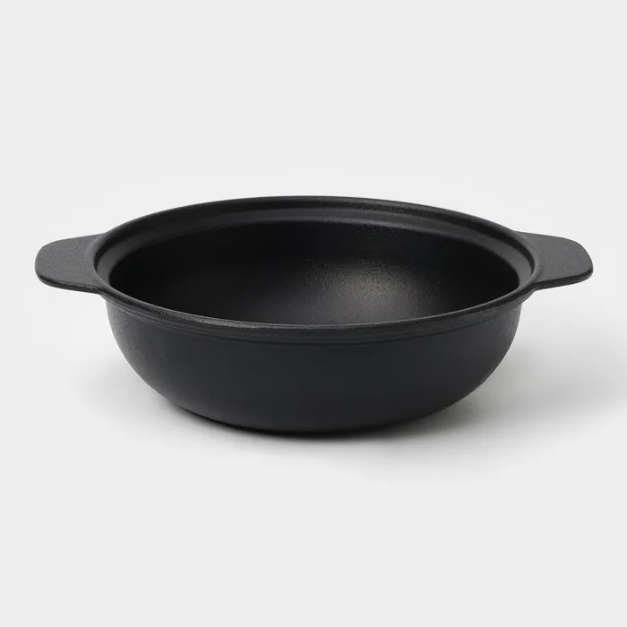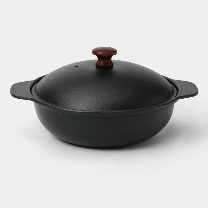 Жаровня чугунная, 2 л, d=24 см, чугунная крышка, чёрная — Характеристики