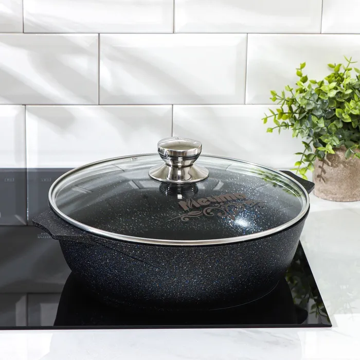 Жаровня «Гранит Star», 4 л, d=30 см, стеклянная крышка, антипригарное покрытие, тёмно-синий — Характеристики