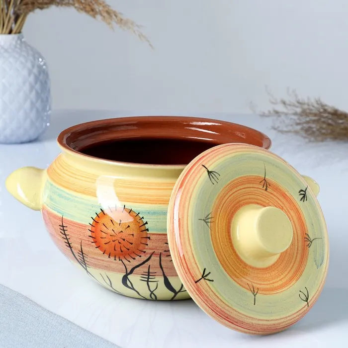 Жаровня Кунгурская керамика, 2 л, с ручками, керамика, разноцветная — Характеристики