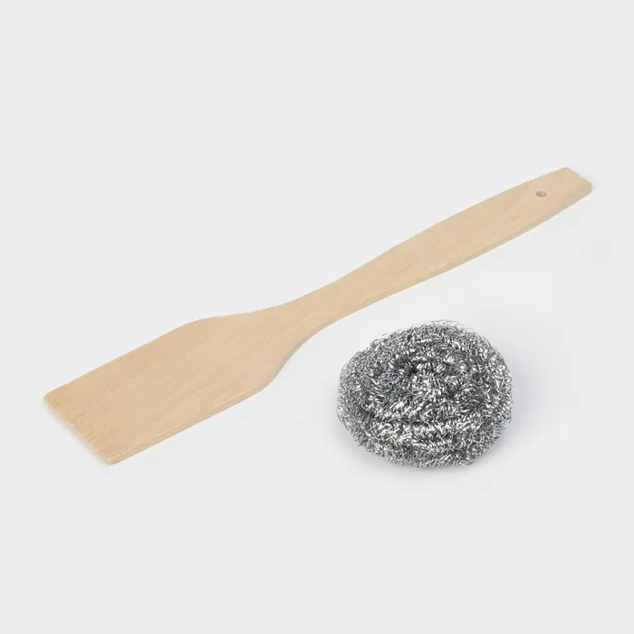 - при появлении следов ржавчины: удалите следы ржавчины (не металлическим предметом), промойте в теплой воде, смажьте тонким слоем подсолнечного масла и прокалите, после остывания протрите сухой ветошью и просушите;