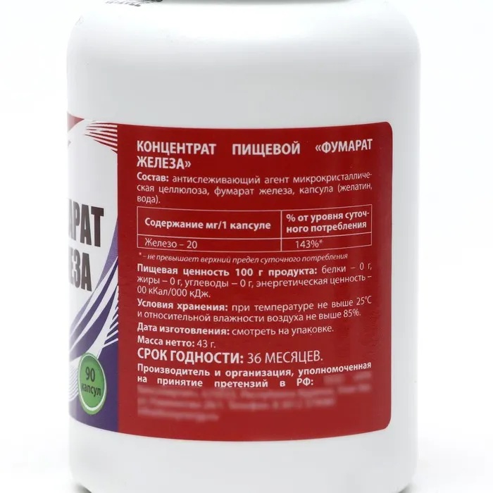 Фумарат железа - органический источник железа с высокой степенью усваиваемости, не имеет характерного железного привкуса.