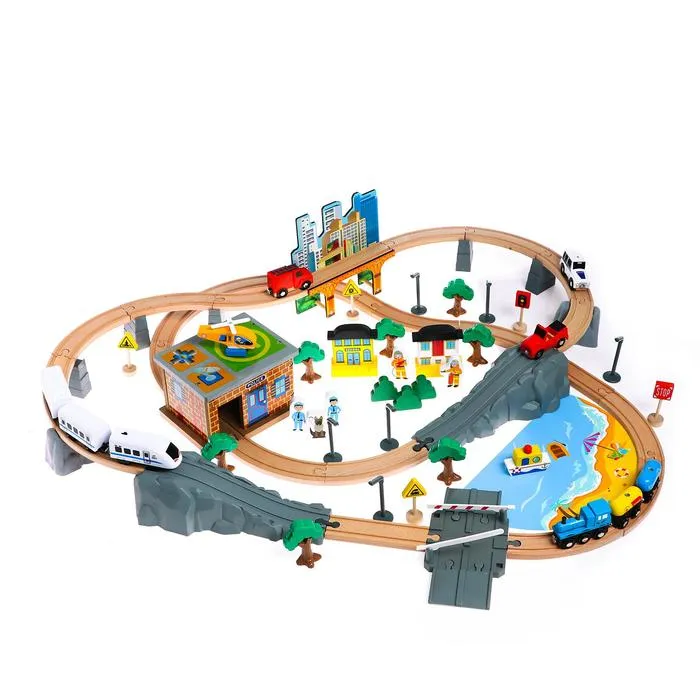 Железная дорога — это красочный набор для сюжетных игр. Большое количество декораций и фигурок позволяет собрать действующий комплекс круговой дороги.
