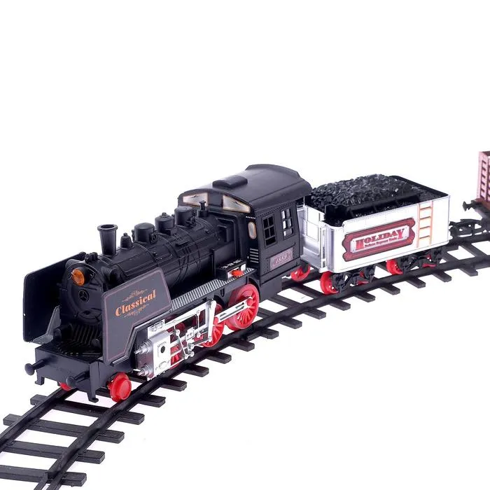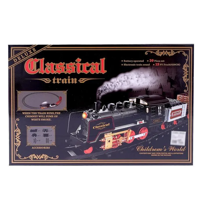 Железная дорога «Классический паровоз», 20 деталей, световые и звуковые эффекты, с дымом, работает от батареек, длина пути 420 см — Характеристики