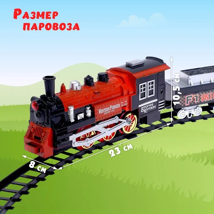 - Эффекты, как у настоящего поезда: впереди горит фара, из трубы идёт дым, а звуковые эффекты имитируют стук колёс и сигналы. Это создаёт атмосферу настоящего железнодорожного путешествия, погружая ребёнка в игру с головой.