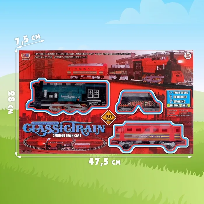 Отправляйтесь в захватывающее путешествие с настоящим паровозом! Железная дорога с эффектами дыма, света и звука – это яркий и увлекательный набор, который перенесёт вашего ребёнка в мир приключений. Классический дизайн, яркие цвета (МИКС) и реалистичные эффекты делают его идеальным выбором для мальчиков.
