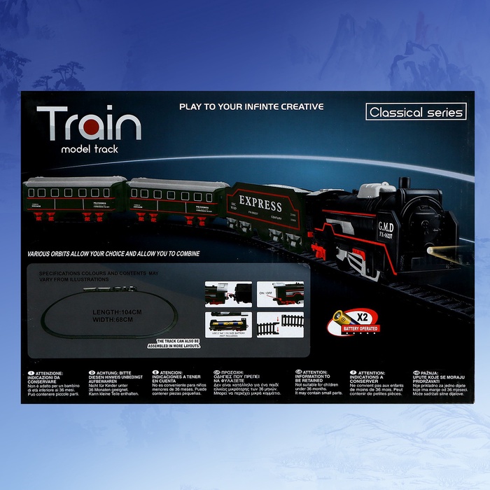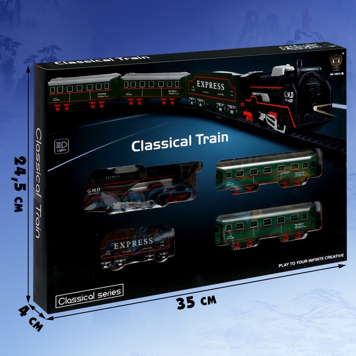 Железная дорога «Классика», работает от батареек, поезд и 4 вагона в комплекте — Характеристики