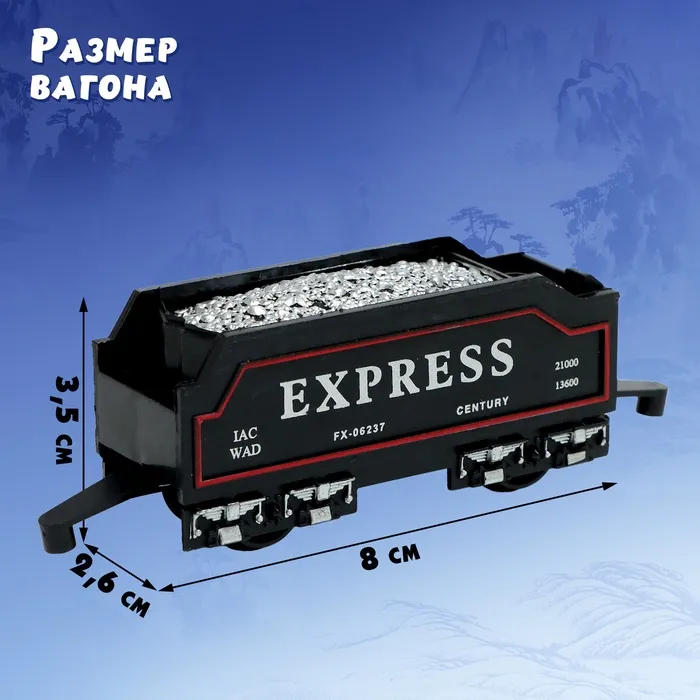 - Полный комплект в коробке: в наборе — локомотив, 3 вагона, рельсы и дополнительные элементы для сборки дороги.