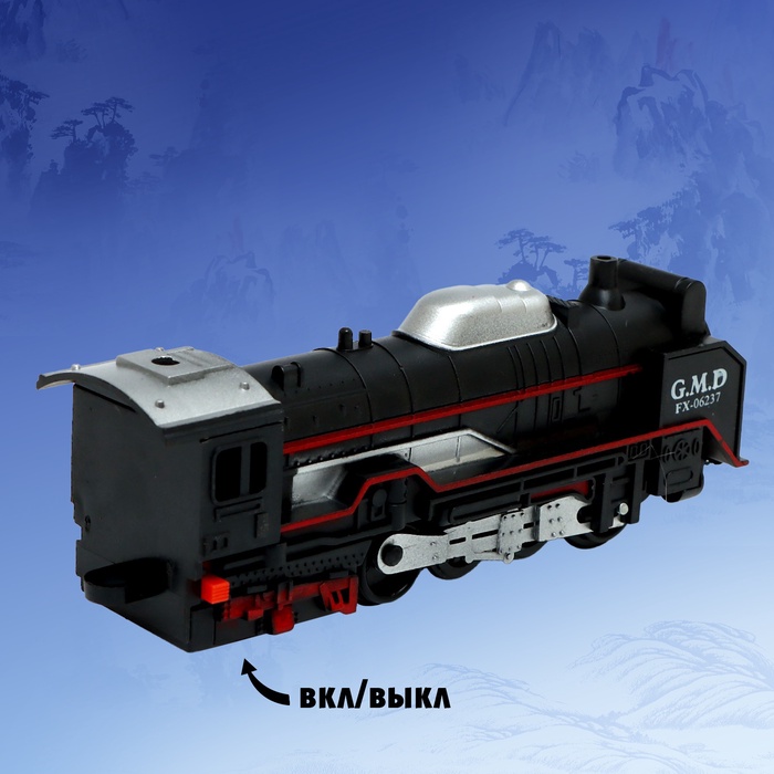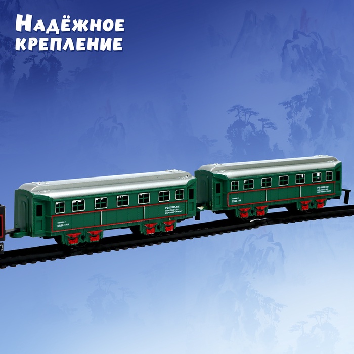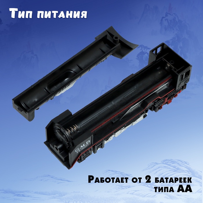 - Самоходный поезд на батарейках: состав движется самостоятельно — нужно только включить его и наблюдать. Для работы нужны 2 батарейки АА (в комплект не входят).