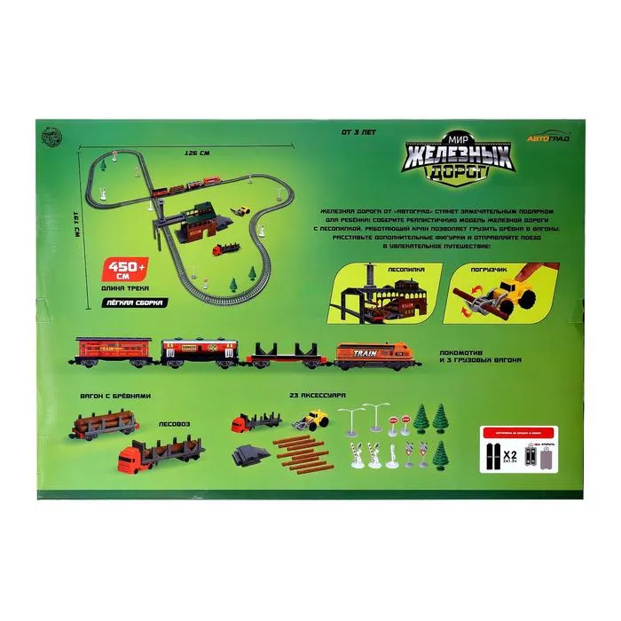 Железная дорога «Лесопилка», работает от батареек, длина пути 450 см — Характеристики