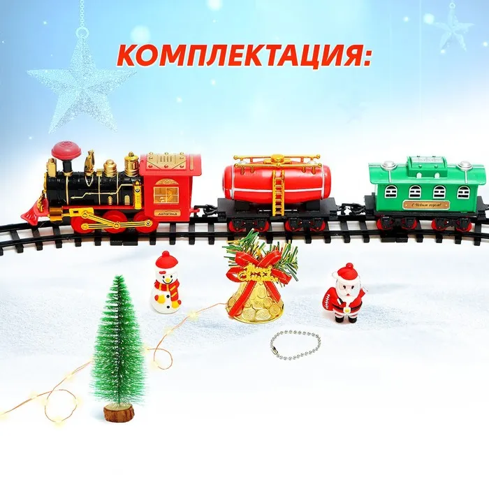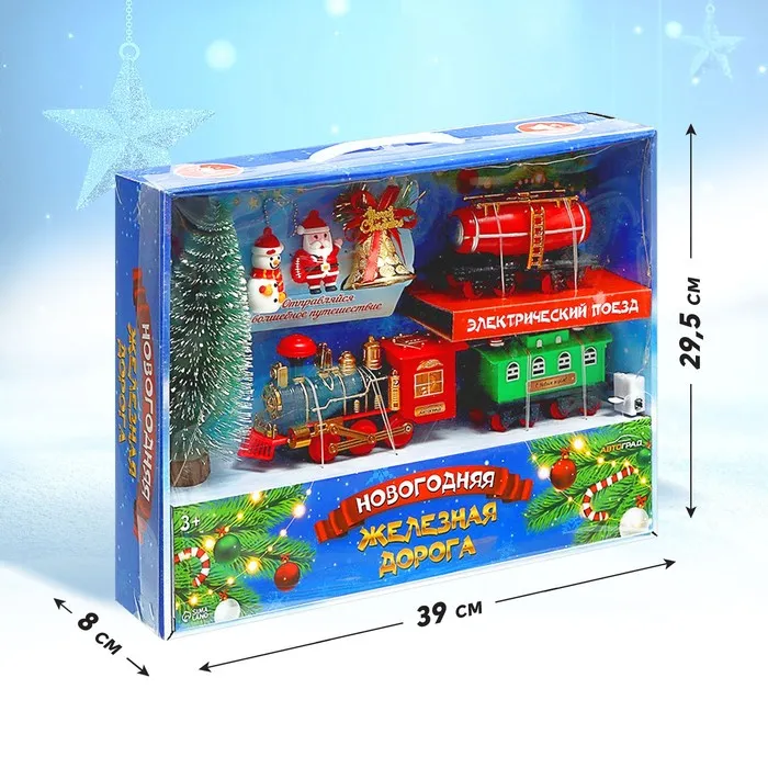 Железная дорога «Новый год», световые и звуковые эффекты, работает от батареек, 3+ — Характеристики