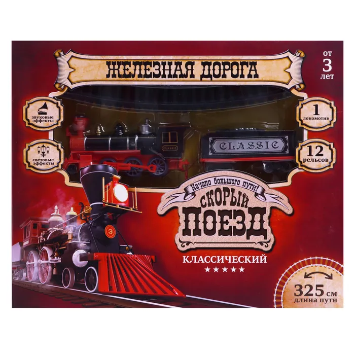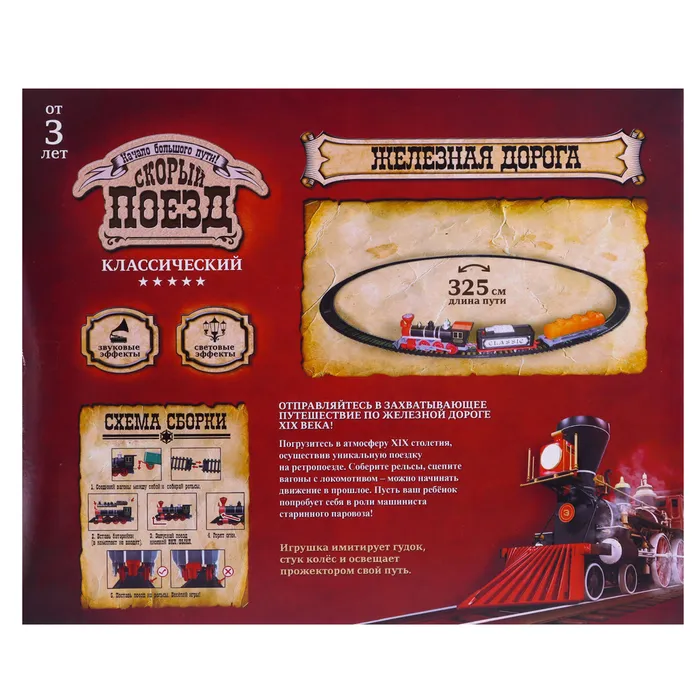 Железная дорога «Паровоз», со светозвуковыми эффектами, протяжённость пути 3,25 м, МИКС — Характеристики