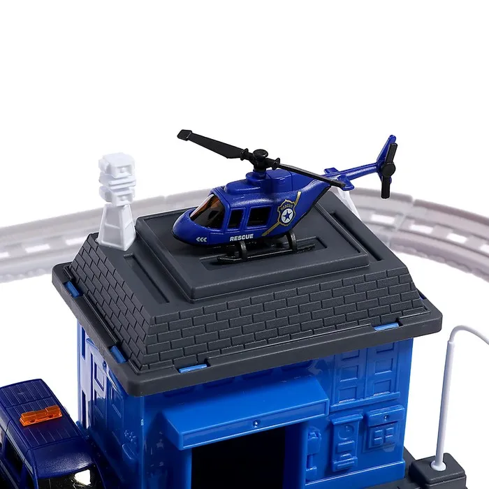 - В комплекте 1 вагон, 3 разных полицейских машины и 1 вертолёт.