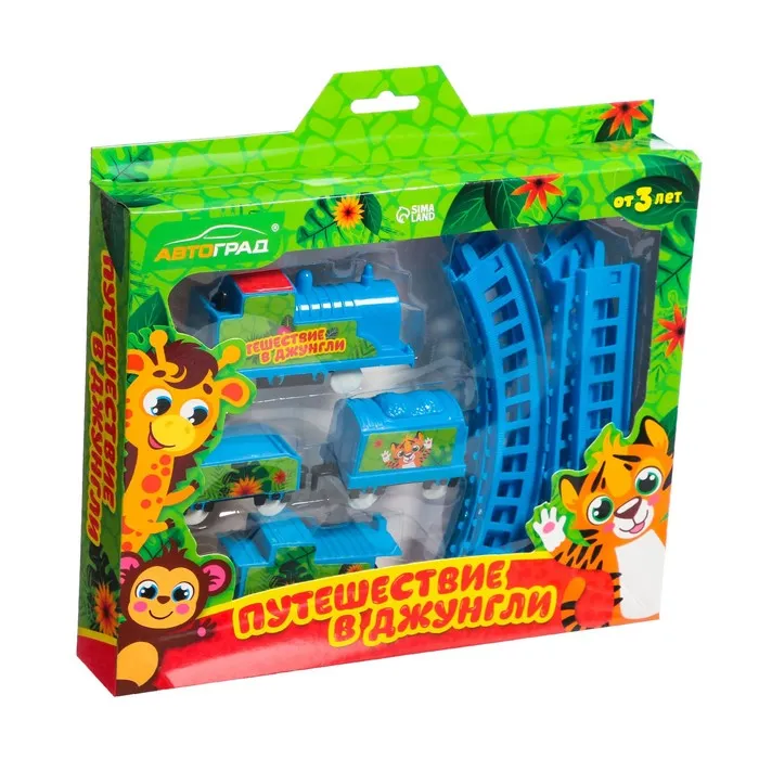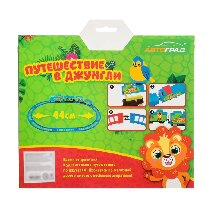 Вперёд — навстречу приключениям! Железная дорога «Путешествие в джунгли» подарит ребёнку яркие эмоции. Его ждёт увлекательное путешествие вместе с весёлыми зверятами. Скорее собирайте железную дорогу, сцепляйте составы и отправляйтесь в путь!