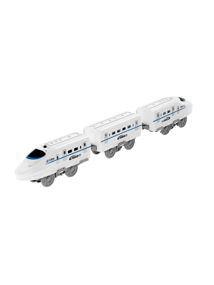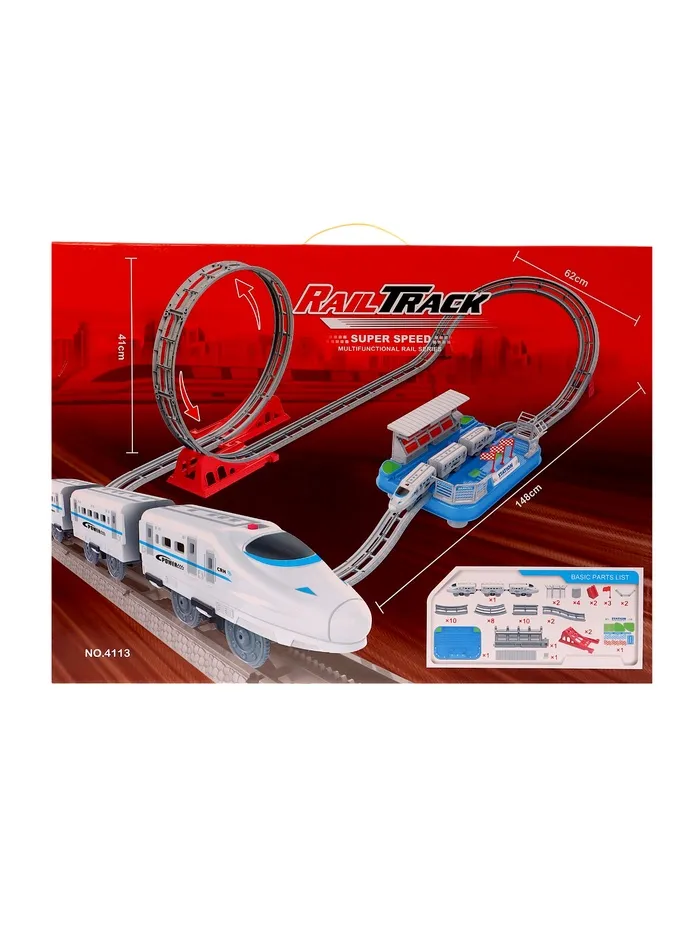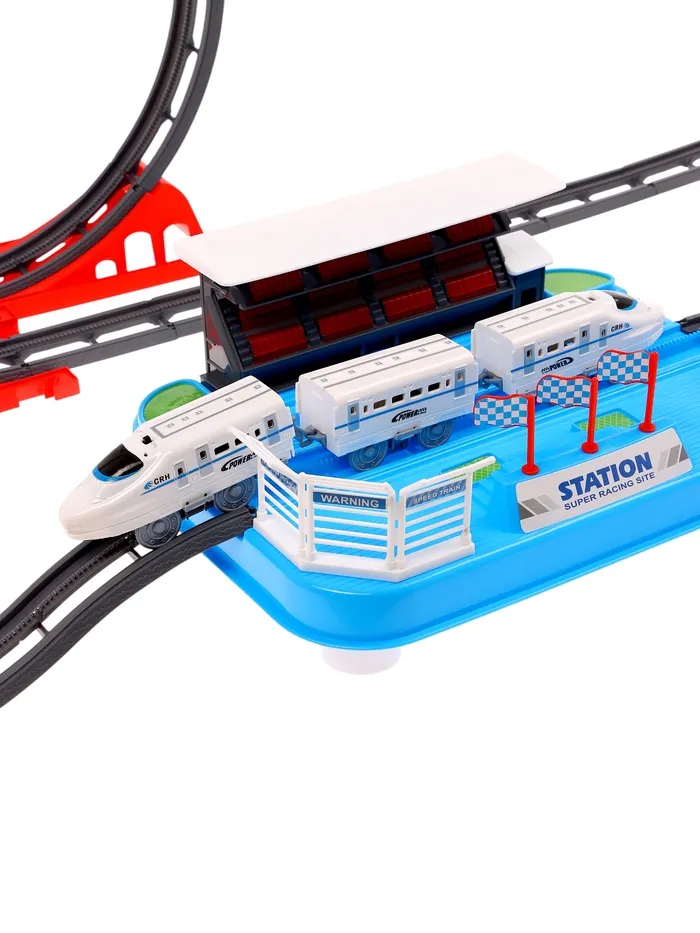 Отправляйтесь в путешествие по рельсам! Железная дорога с самоходным поездом – это захватывающий набор, который перенесёт ребёнка в мир скоростных пассажирских перевозок. Белоснежный современный поезд с 2 вагонами готов к отправлению по трассе длиной 410 см. Звуковые эффекты и детализированная станция делают игру максимально реалистичной.