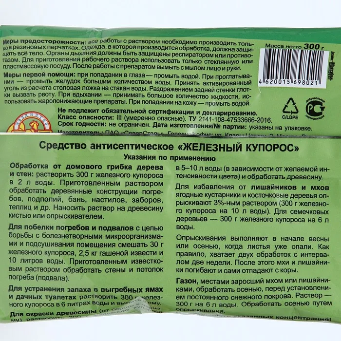 Железный купорос, Ваше Хозяйство, 300 г — Характеристики