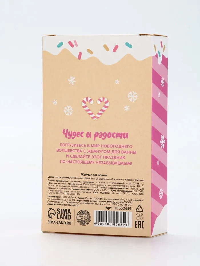 Жемчуг для ванны «Чудес и радости», 200 г, ягодный леденец, URAL LAB — Характеристики