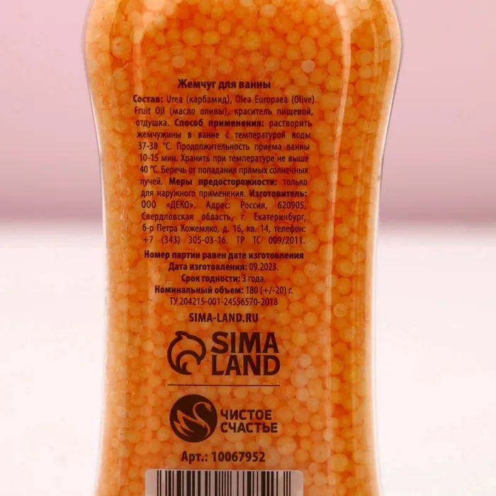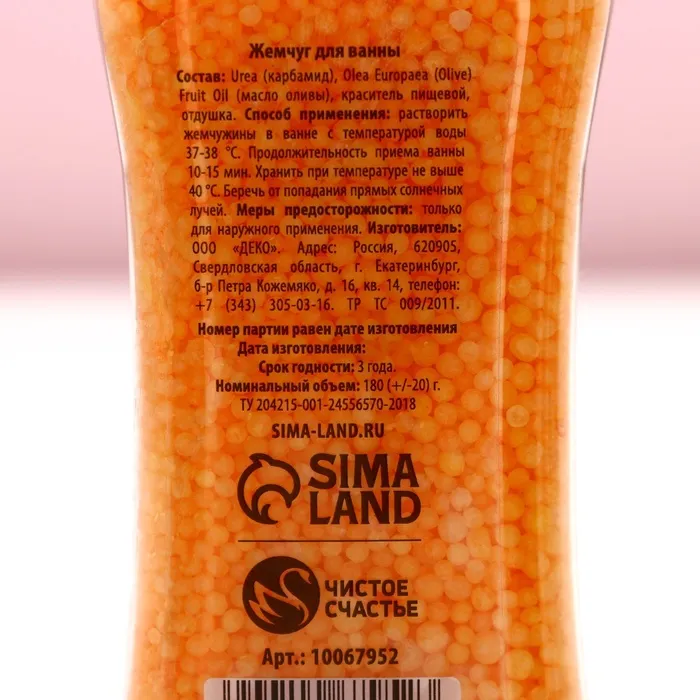 Жемчуг для ванны «Для тебя», 180 г, аромат персика и сливок, Чистое счастье — Характеристики