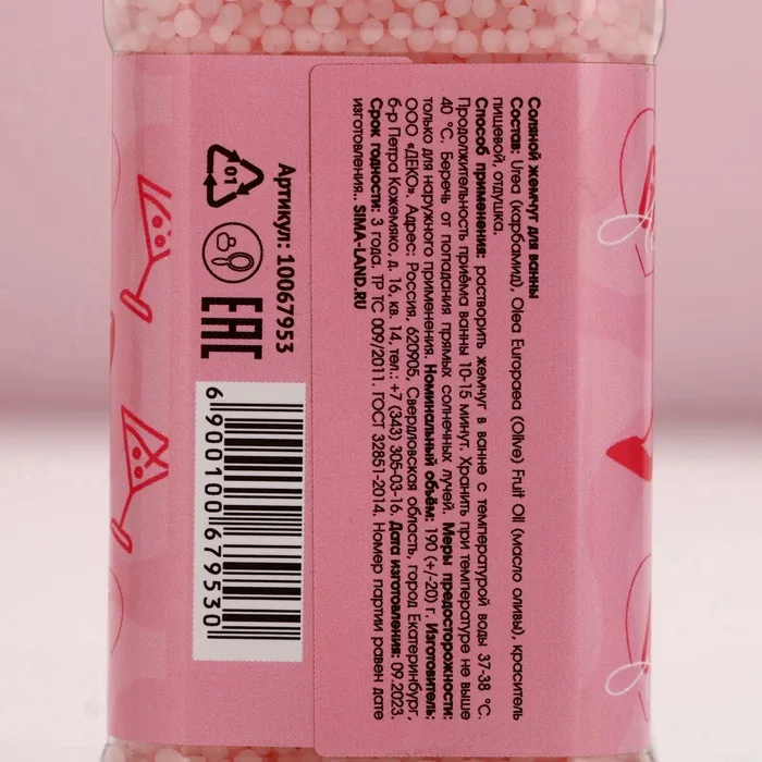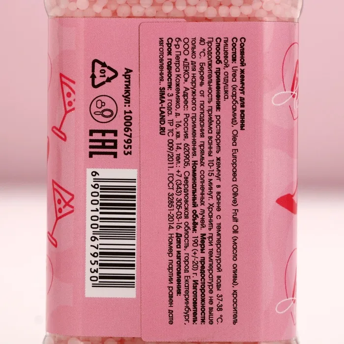 Жемчуг для ванны «Кайфуй!», 190 г, аромат лесных ягод, Чистое счастье — Характеристики