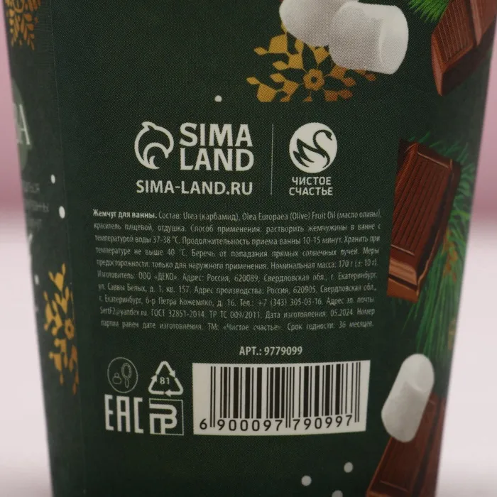 Жемчуг для ванны «Постучится в дом!», 170 г, аромат горячего шоколада с маршмеллоу, Чистое счастье — Характеристики