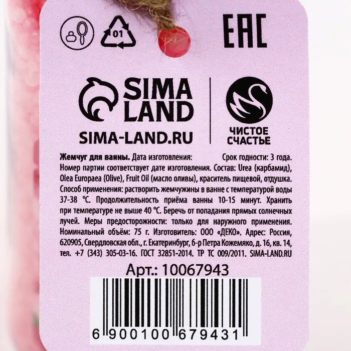 Жемчуг для ванны «Самой нежной», 75 г, аромат пионов, ЧИСТОЕ СЧАСТЬЕ — Характеристики