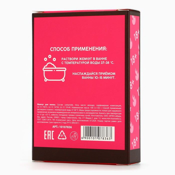 Жемчуг для ванны "Секс бомбе", 100 гр, аромат дикая вишня — Характеристики