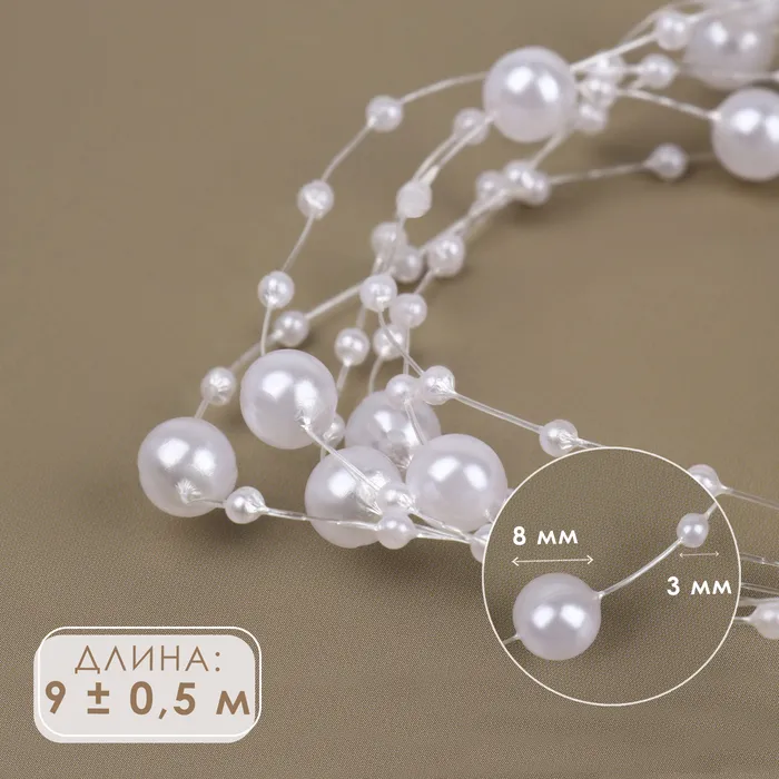 Белый жемчуг на леске — универсальный декор для праздников, свадеб и творческих проектов. Гибкая нить с пластиковыми бусинами держит форму, не перекручивается и подходит для многоразового использования. Легко режется на нужные отрезки — оформляйте арки, люстры, фотозоны или создавайте украшения своими руками.