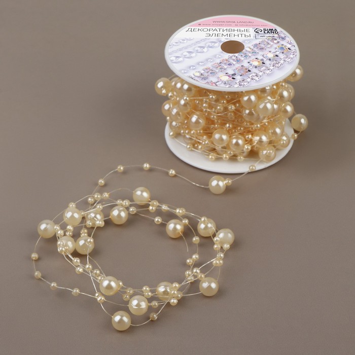 Золотистый жемчуг на леске — это элегантное решение для тех, кто ценит красоту в деталях. Имитация натурального жемчуга с переливами благородного золота добавит изысканности любому интерьеру или творческому проекту. Гибкая леска длиной 9 метров позволяет воплощать самые смелые идеи без ограничений.