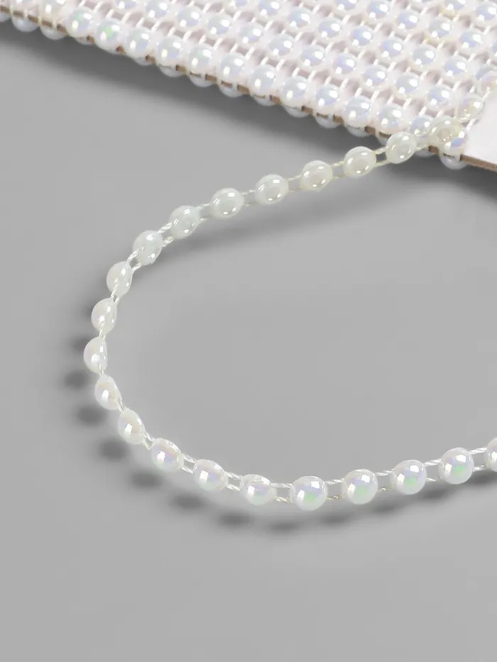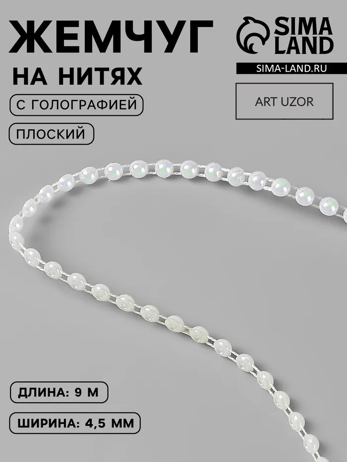 Эти декоративные украшения из жемчуга на нитях с голографическим эффектом предназначены для оформления открыток, подарков и рукоделия. Их плоская форма и белый цвет создают элегантный и универсальный акцент, который легко вписывается в различные стили оформления. В длину нити входит около 9 метров, что позволяет использовать их для множества проектов и поделок.