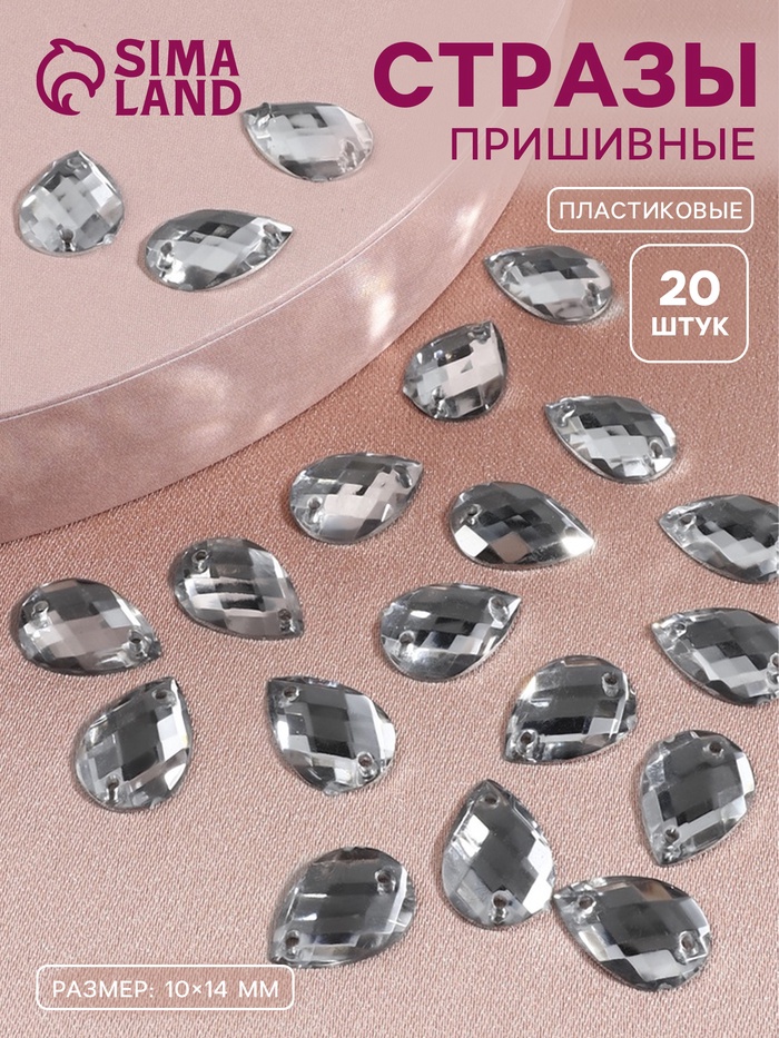 Стразы пришивные «Капля», 10×14 мм, 20 шт., белые
