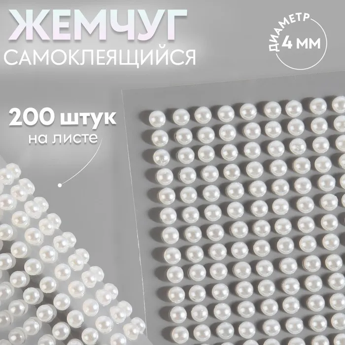 Жемчуг самоклеящийся, d=4 мм, 200 шт. на листе на листе, белый — Характеристики