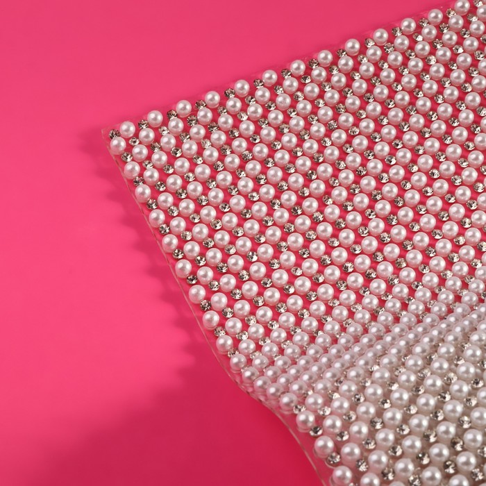 Жемчуг со стразами термоклеевой, 40×24 см, белый — Характеристики