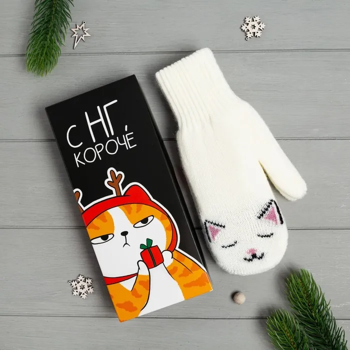 Женские варежки в подарочной коробке "С НГ" размер 19 — Характеристики