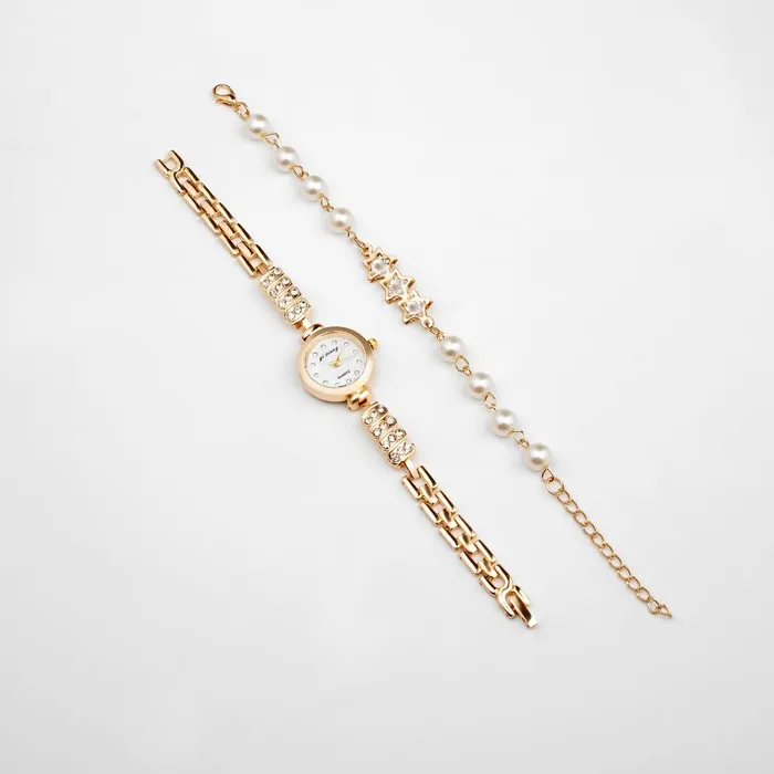 Женский подарочный набор "Эйенн" 2 в 1: наручные кварцевые часы, браслет, d-2.5 см — Характеристики