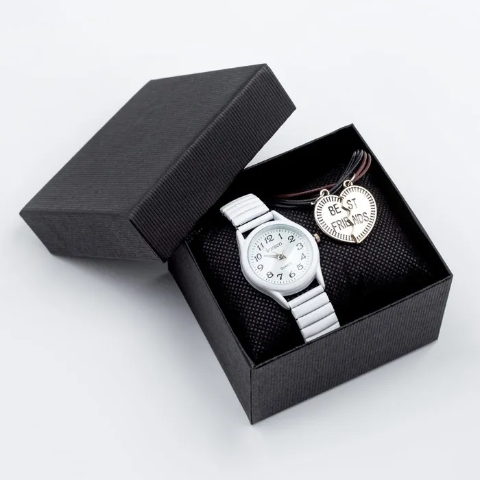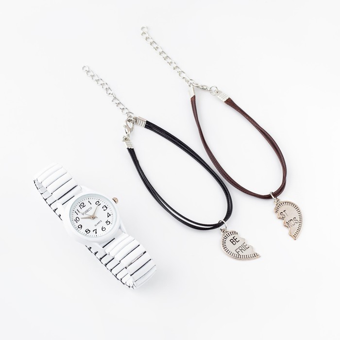 Классный набор с часами и браслетом с амулетом сердце "Best friend", которые можно разделить. Прекрасный подарок, чтобы обрадовать ее, оставив память о себе.