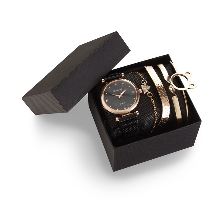 Подарите незабываемые моменты стиля и элегантности с нашим подарочным набором. Этот набор включает в себя изысканные женские наручные часы и 4 уникальных браслета на руку. Изготовленные из высококачественного металла и прочного стекла, часы и аксессуары надежно прослужат долгое время, подчеркивая утонченность и роскошь образа. Независимо от повода для подарка, этот набор идеально подходит как для особых событий, так и для повседневного использования.