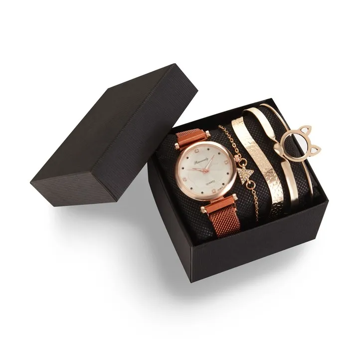 Подарите незабываемые моменты стиля и элегантности с нашим подарочным набором. Этот набор включает в себя изысканные женские наручные часы и 4 уникальных браслета на руку. Изготовленные из высококачественного металла и прочного стекла, часы и аксессуары надежно прослужат долгое время, подчеркивая утонченность и роскошь образа. Независимо от повода для подарка, этот набор идеально подходит как для особых событий, так и для повседневного использования.