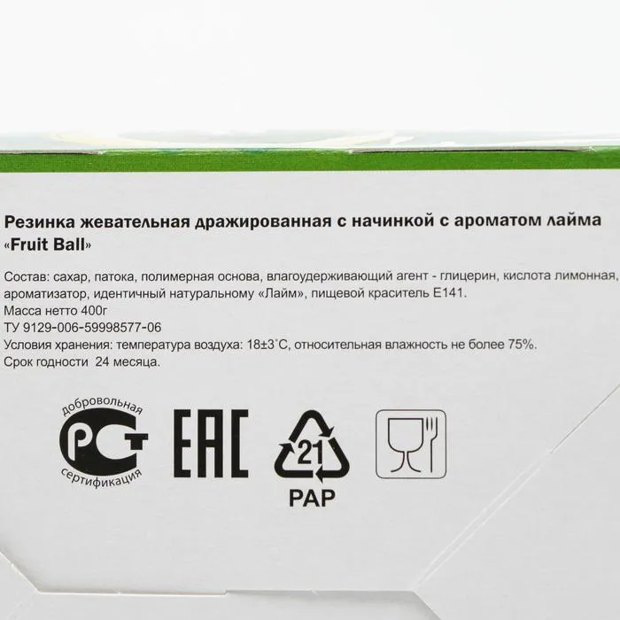 Насладитесь фруктовым разнообразием и освежающим вкусом жевательной резинки Fruit Ball с лаймом — это замечательный способ поднять себе настроение и сделать каждый момент более сладким и запоминающимся!